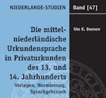 Ute K. Boonen: Die mittelniederländische Urkundensprache in Privaturkunden des 13. und 14. Jahrhunderts: Vorlagen, Normierung, Sprachgebrauch. (Dissertation.) Niederlande-Studien Bd. 47, Münster: Waxmann, 2010. 386 p., gebonden, ISBN 978-3-8309-2330-5, EUR 42,90.
