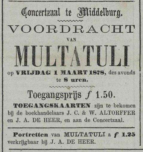 In de jaren 1878–1881 ondernam Multatuli vier voordrachtentournees door Nederland, waarbij hij ook Middelburg vier keer aandeed. Zijn lezingen werden bezocht door notabelen als Floor Wibaut en de zussen Mathilde en Marie Berdenis van Berlekom.