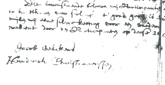Inmiddels hebben wij voor het Journal of Early American Historyeen artikel voorbereid waarin wij de tekst van het verdrag taalkundig nauwkeurig hebben geanalyseerd. Onze conclusie is dat de tekst onmogelijk in 1613 kan zijn geschreven, omdat hij circa 40 anachronismen bevat: woordvormen, woordcombinaties ofwoordbetekenissen die niet voorkwamen in de 17e eeuw. Op taalkundige gronden is het aannemelijk dat de tekst in de 20e eeuw is geschreven.