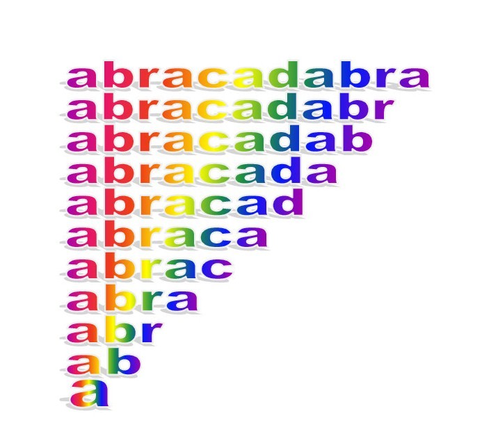 Je schreef het woord elf keer onder elkaar, waarbij je steeds één letter aan het eind wegliet; zo ontstaat er een driehoek waarin het woord op meerdere wijzen te lezen is (probeer maar). De gedachte is: zoals de letters afnemen, zo neemt het ongemak af. De betekenis van het woord is niet duidelijk. En eigenlijk schreven ze abrasadabra. In het Griekse alfabet: ΑΒΡΑΣΑΔΑΒΡΑ. De sigma (of misschien een oude vorm daarvan) werd later voor een c aangezien (uitgesproken als een k), en zo hebben alle gebruikers sindsdien de spreuk dus verkeerd opgeschreven dan wel uitgesproken. En zoals iedere Harry Potter-adept weet, moet je een toverspreuk wel heel precies zeggen voordat hij werkt.