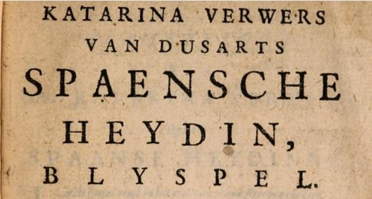 Of dit soort oude werken ooit nog in druk zullen verschijnen, lijkt me heel onwaarschijnlijk en ook niet noodzakelijk, want veel is online beschikbaar, ook het in 1644 als eerste in Nederland door een vrouw geschreven toneelstuk ‘Spaensch Heydin’ van Catharina Verwers (ook wel met een K). Je zou verwachten dat het op de DBNL staat, maar dat is niet het geval, maar het is online te vinden op de site van de Leidse Universiteit.