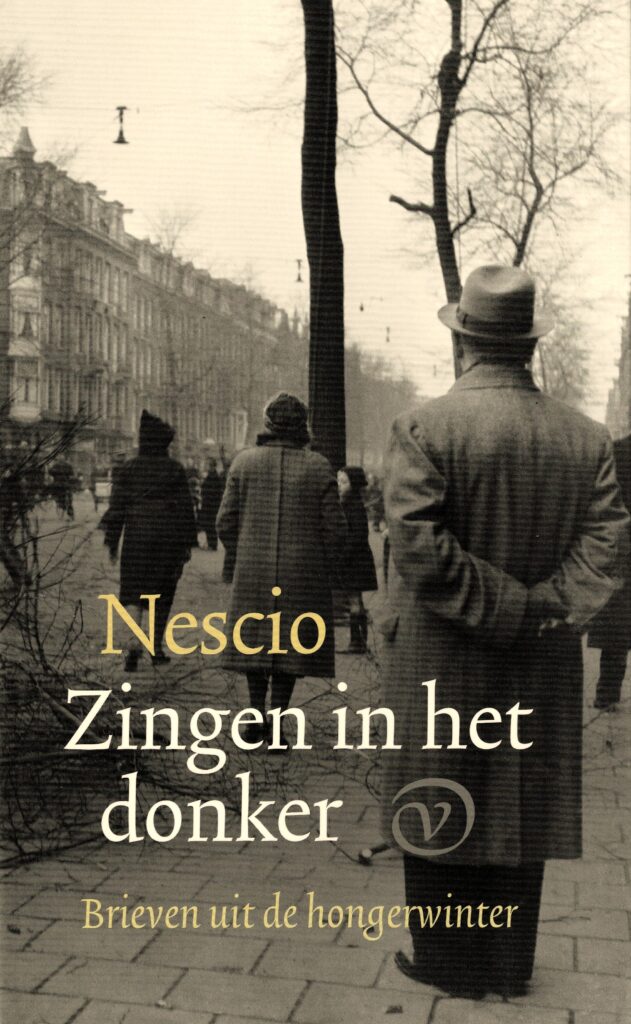 In Zingen in het donker begint Nescio op 13 augustus 1944. In deze eerste brief komt nog de Nesciaanse i-stijl voor: ‘En langs Muiden weer over den verlaten weg terug en op de brug over ’t Merwedekanaal kon i 2 eilanden zien: Pampus en Marken en i wist er van het koepelfort dat ze kunnen (of konden) laten rijzen en dalen en toen we thuis kwamen ging i zonder wat te zeggen in de Witte Bison lezen.’ Na deze brief verdwijnt i (Nescio), althans qua stijl uit beeld. De stijl wordt die van Grönloh, die in gewoon Nederlands schrijft over zijn thuisleven met Ossi (scharrelen, koken, eten, liedjes zingen, lezen), beschouwend, waarnemend, concluderend. Maar in de sfeerbeelden blijkt Nescio nog volop te leven. 28 januari 1945 fietst hij de stad in: ‘Toen ik de brug bij de Muiderpoort afreed, de Middellaan in, was de Plantage een gapend, donker mistgat daar je niet ver in kijken kon. En maar op je wiel letten. Om half negen was het bij den bakker nog half donker. Raar zag de stad er uit, zoo verlaten. In de Linnaeusstraat [hij woonde in een ruim bovenhuis op nummer 11 van de Linnaeushof in de Watergraafsmeer] en in de Plantage fietsten enkele schimmen, vermoedelijk naar hun werk. De Blauwbrug lag verlaten in de sneeuw, je kon een klein eindje de Amstel op en af zien, den ingang van de Amstelstraat en het Waterlooplein, er liep één mensch, op de brug, verder nergens iemand. Tegen half negen! Denk eens aan de trams vol korzelige kantoorbedienden en winkeljuffrouwen die vroeger van het Waterlooplein de Blauwbrug opstormden, lijn 9 en lijn 14 en de vele fietsers, auto’s en vrachtwagens. Toch was het zoo waardiger en plechtig, Amsterdam ville morte.’