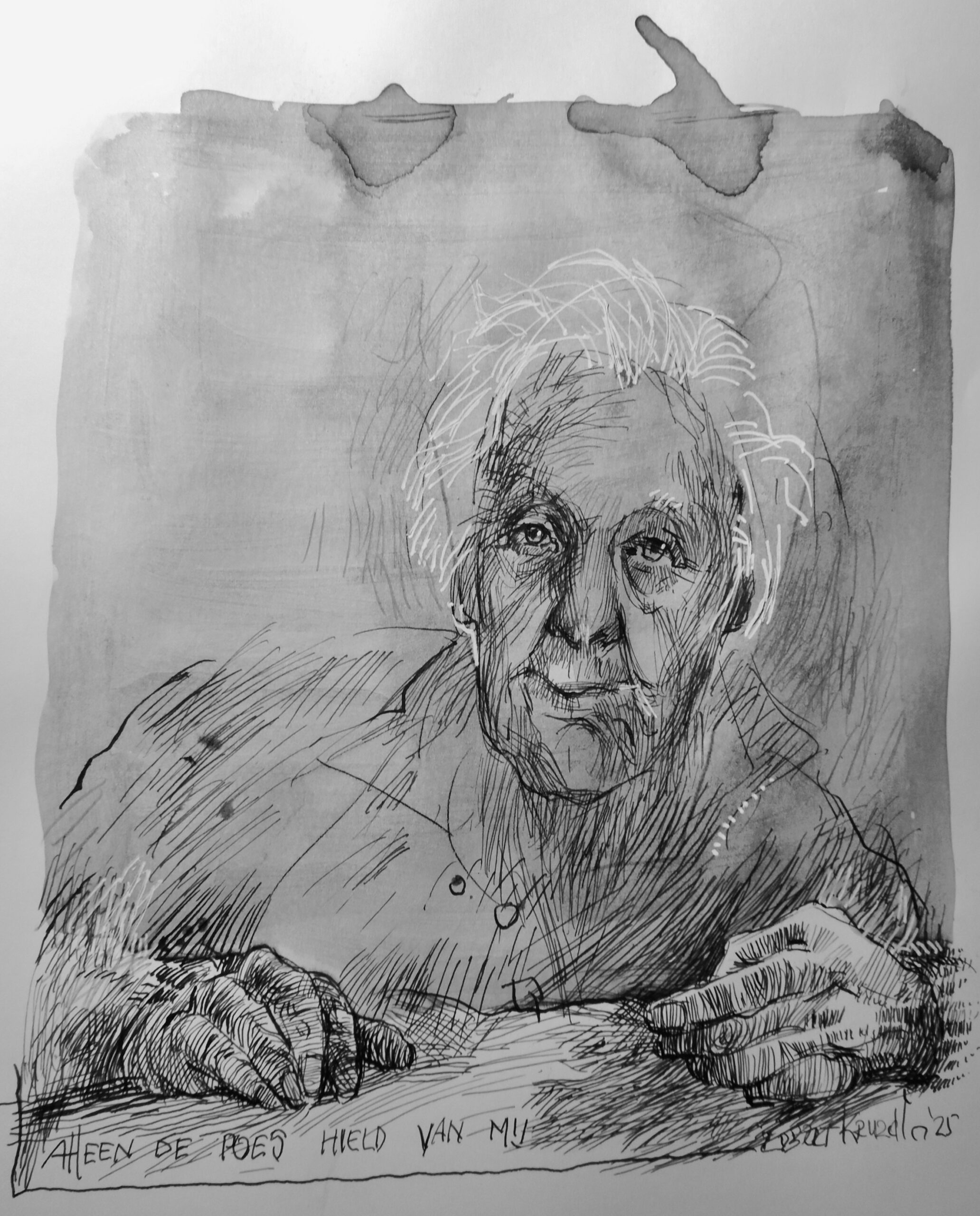 De enige die van mij hield was de poes. Ziek en met haar laatste krachten verliet ze het huis en kwam toch terug. Ik heb haar zien sterven. Wat een mens mist, is een poezenluikje. Daarom gaat het vaak mis tussen mensen en is de muziek de enige een troost. Schrijven is muziek maken, muziek spelen is schrijven. De poes, daar werd ik vrolijk van.
