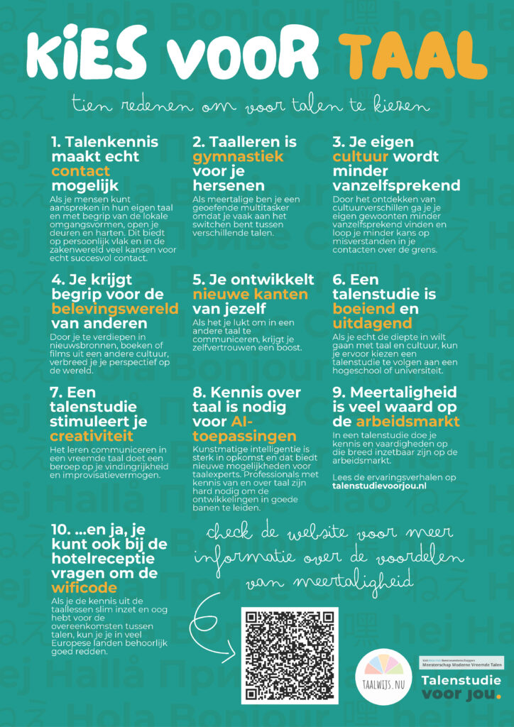 Deze ’tien redenen’, opgesteld door het Meesterschapsteam Moderne Vreemde Talen, zijn nu ook beschikbaar als klassenposter (meer info). Deze post verscheen eerder op Taalwijs