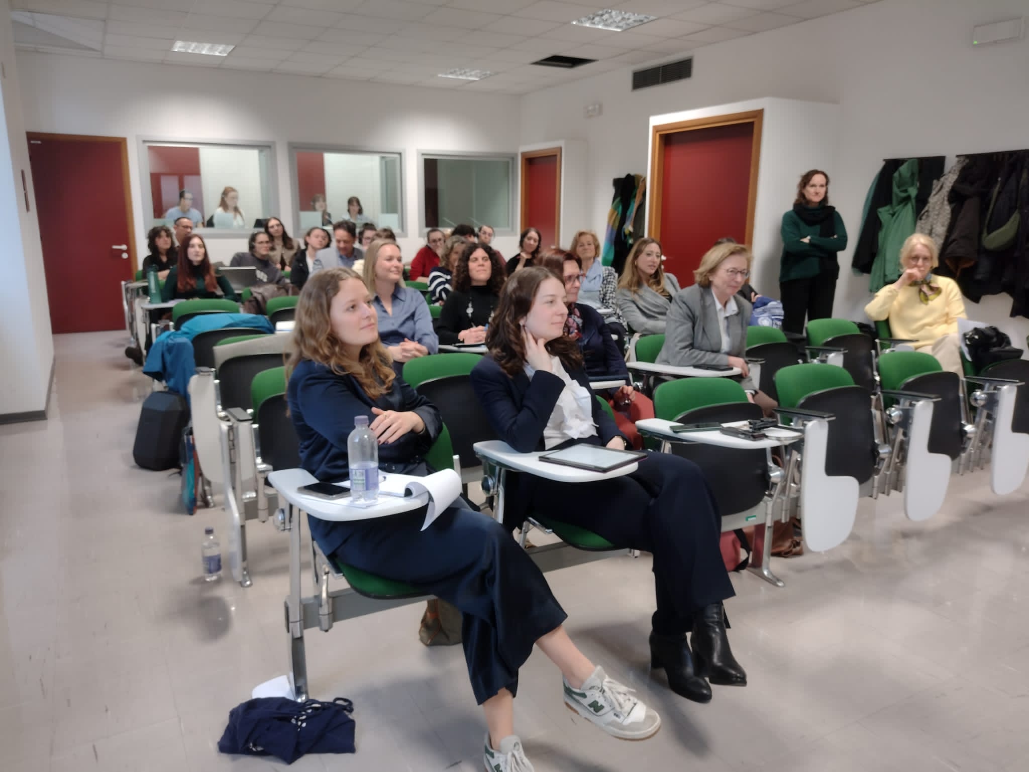 Naast de sprekers waren ook collega’s aanwezig van de KU Leuven, met name de docenten Mia Ratinckx en Marc Delbarge, en natuurlijk studenten van de opleiding Nederlands in Triëst, wat zorgde voor een dynamische en interactieve sfeer. Het gehele evenement werd simultaan getolkt door masterstudenten naar het Italiaans en naar het Nederlands, waardoor de sessies toegankelijk waren voor een breed publiek en de uitwisseling van ideeën werd vergemakkelijkt.