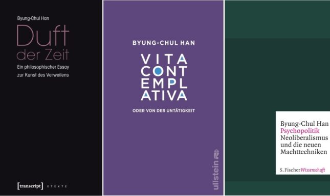 - Byung-Chul Han, Vita contemplativa oder von der Untätigkeit (Ullstein 2022), vertaald in het Nederlands door Mark Wildschut als Vita contemplativa: Over inactiviteit (Ten Have 2023).