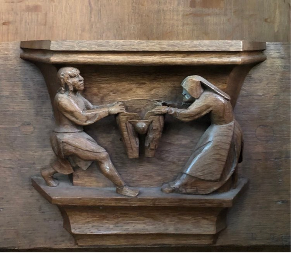 - De leerlingen kunnen de afbeelding van ‘de strijd om de broek’, een idee uit de burgermoraal van de late middeleeuwen, herkennen en de betekenis ervan verklaren.