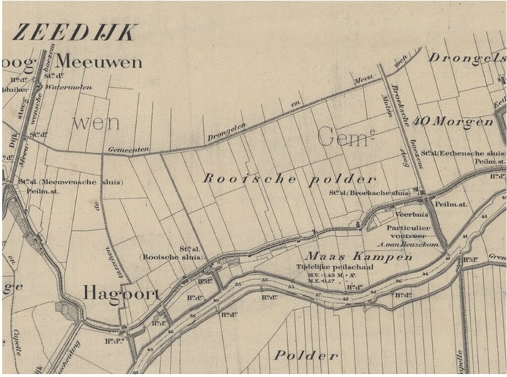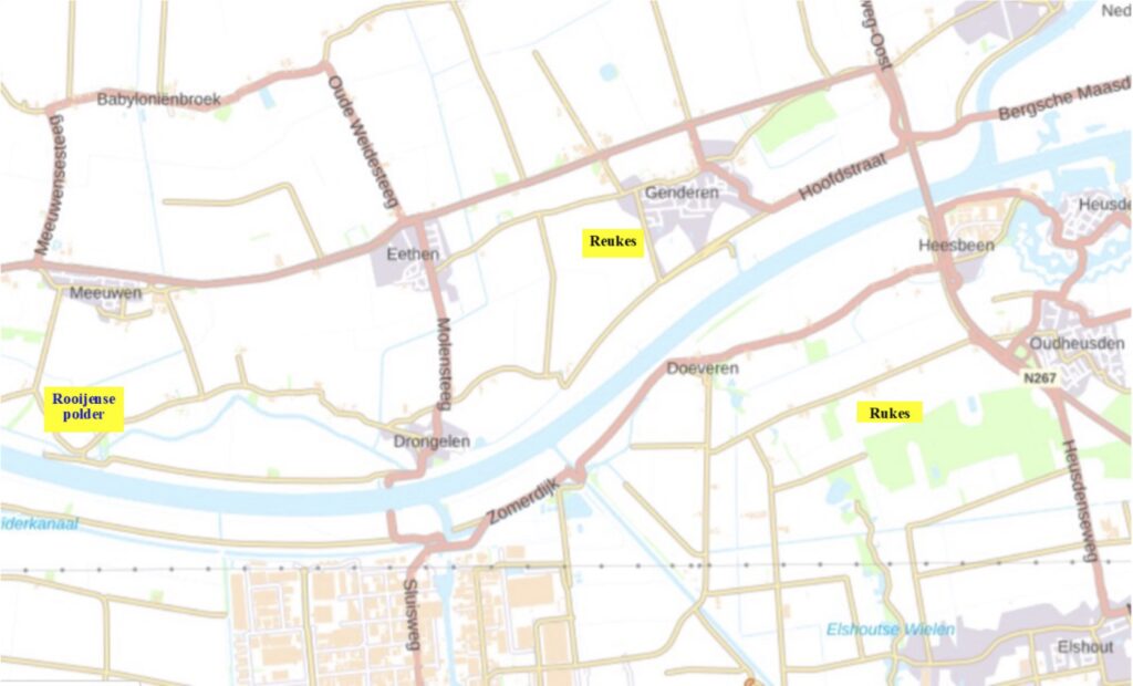Vlak bij het gebied Reukes kwamen we, in diverse varianten, de toponiemen Ruede en de Rooijense polder alsook De Reekens of Rukes tegen.