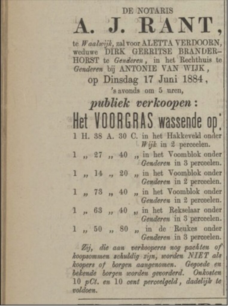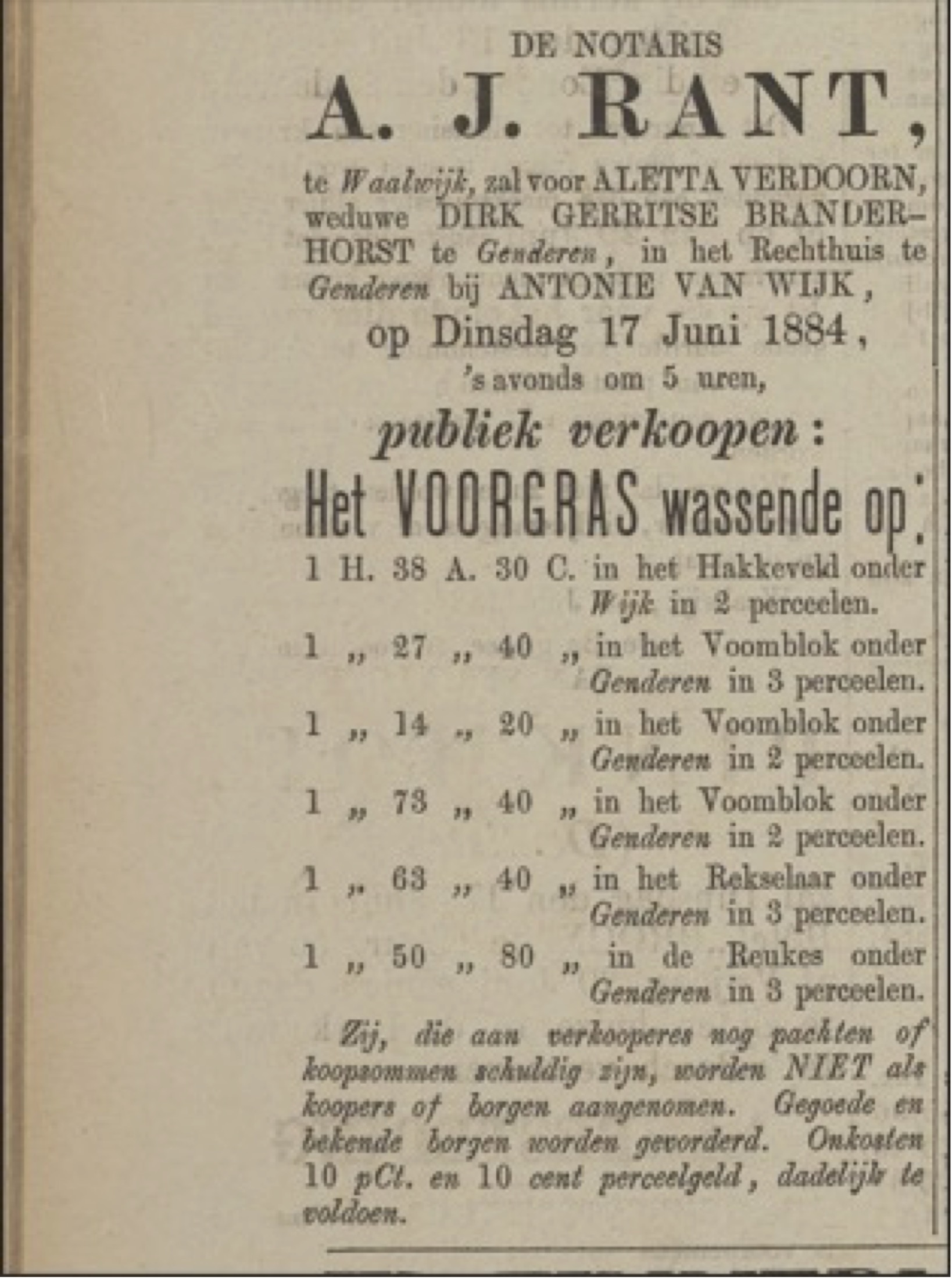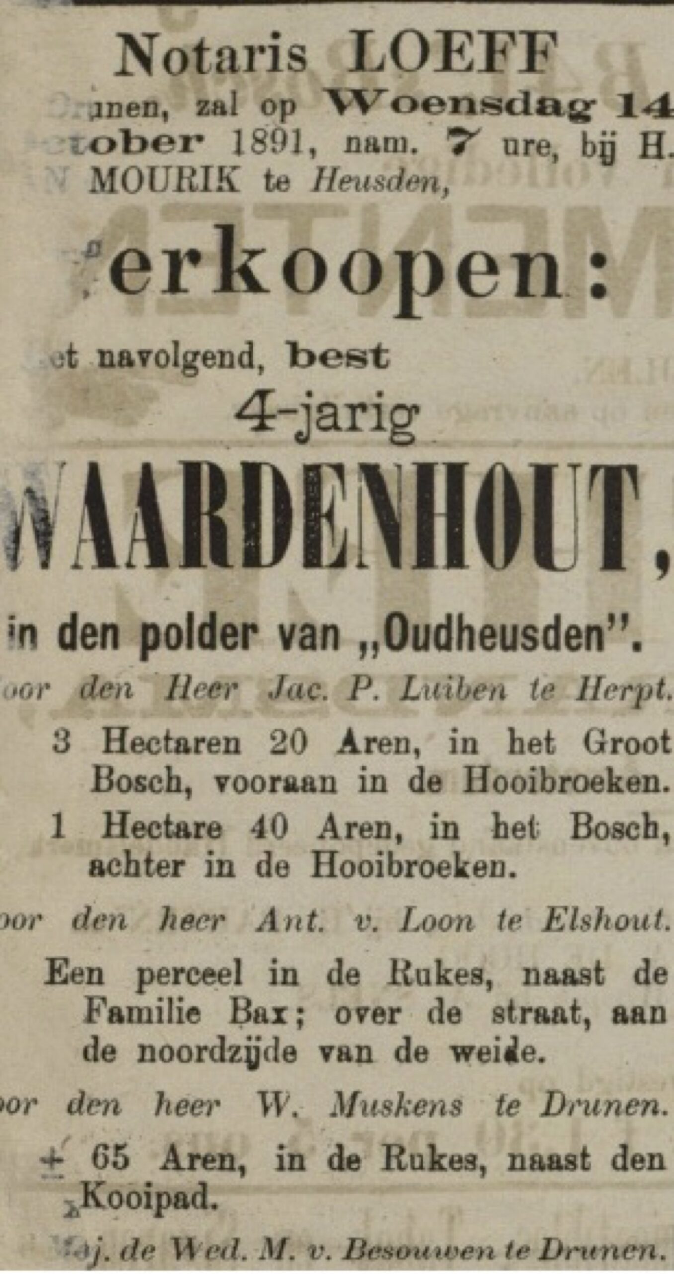 Rukes is de gewone uitspraakvorm. In alle advertenties is sprake van Rukes, behalve één. Die is geplaatst door de Brusselse Graaf d‘ Oultremont, grootgrondbezitter uit Drunen. Daar luidt het toponiem deftig Ruken.
