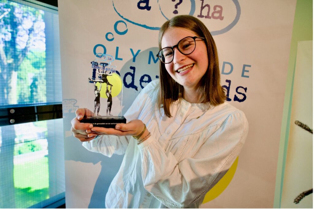 1. Winnares van de Olympiade Nederlands 2025 is Lies de Schepper (Sint-Ritacollege Kontich), voor haar onderzoek naar “De sociale betekenis van dierennamen in de Lage Landen”. Begeleiders: dr. Melissa Schuring (Vrije Universiteit Brussel) en Karlien Franco (Katholieke Universiteit Leuven). Bekijk het winnende filmpje