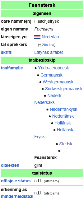 Dat, op it webstek Feanstersk fan wikiwand wurdt it dialekt net inkeld as útstoarn ferklearre, mar krijt ek nochris ynwreaun dat it net in selsstannich dialekt wie mar in mingtaal fan it Frysk. It Feensters soe him yn syn grêf omdraaie!