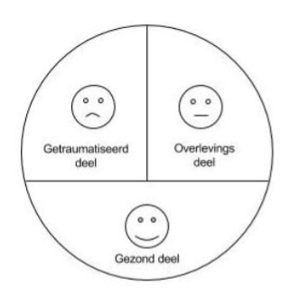 Al van in de moederschoot wordt de menselijke psyche opgesplitst in verschillende delen. Er is het getraumatiseerde deel dat pijnlijke herinneringen en emoties bevat. Daarnaast is er een heel sterk overlevingsdeel dat de persoon helpt om, ondanks het trauma, te functioneren. Tot slot is er ook het gezonde deel dat streeft naar genezing en zelfrealisatie.