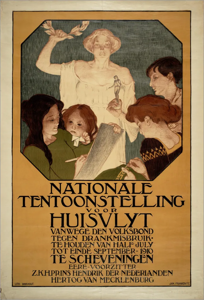 Het huisvlijt– en slöjd-onderwijs waren eind negentiende en begin twintigste eeuw populair. In 1910 werd in Scheveningen de eerste (tevens laatste) Nationale tentoonstelling voor huisvlijt georganiseerd, waarin trots een keur aan huisvlijtproducten voor het publiek werd uitgestald. De organisator van die tentoonstelling? Dat was de Volksbond tegen Drankmisbruik. Deze bond zag het bevorderen van huisvlijt in gezinsverband namelijk als een middel om drankmisbruik tegen te gaan.