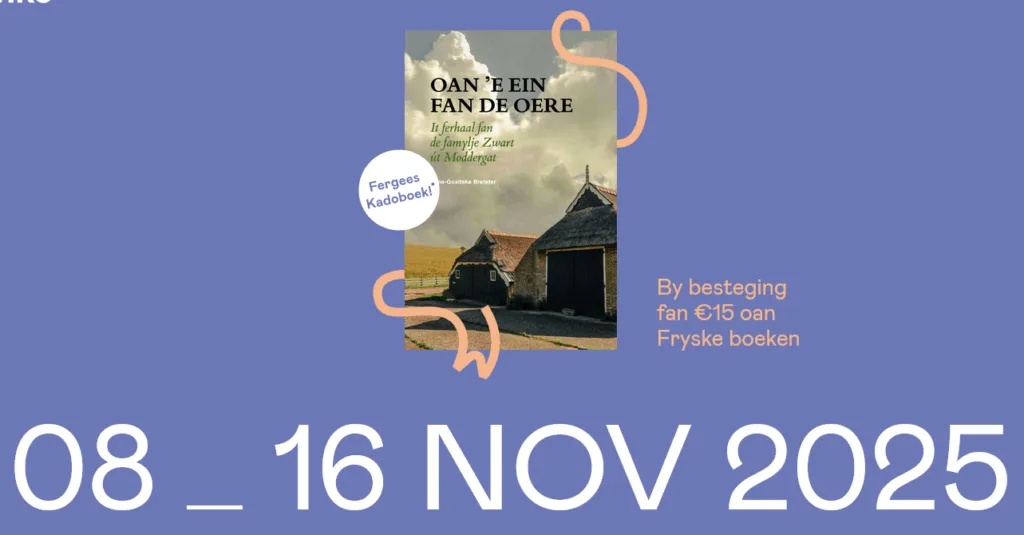 Freed 7 novimber wurdt mei it Frysk Boekefeest yn De Kanselarij yn Ljouwert it startsein jûn foar de Fryske Boekewike 2025. Op dy feestlike jûn sil ek it Kadoboek ‘Oan ’e ein fan De Oere’ fan Anne-Goaitske Breteler presintearre wurde. De Fryske Boekewike wurdt holden fan 8 o/m 16 novimber. It Kadoboek is yn de Fryske Boekewike fergees te krijen by oanskaf fan op syn minst € 15 oan Fryske boeken by jo boekhannel.