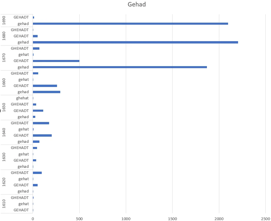 Figuur 6. De spelling van ‘gehad’ in de kranten