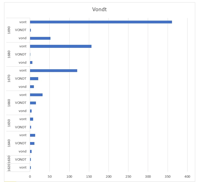 Figuur 7. De spelling van ‘vond’ in de kranten