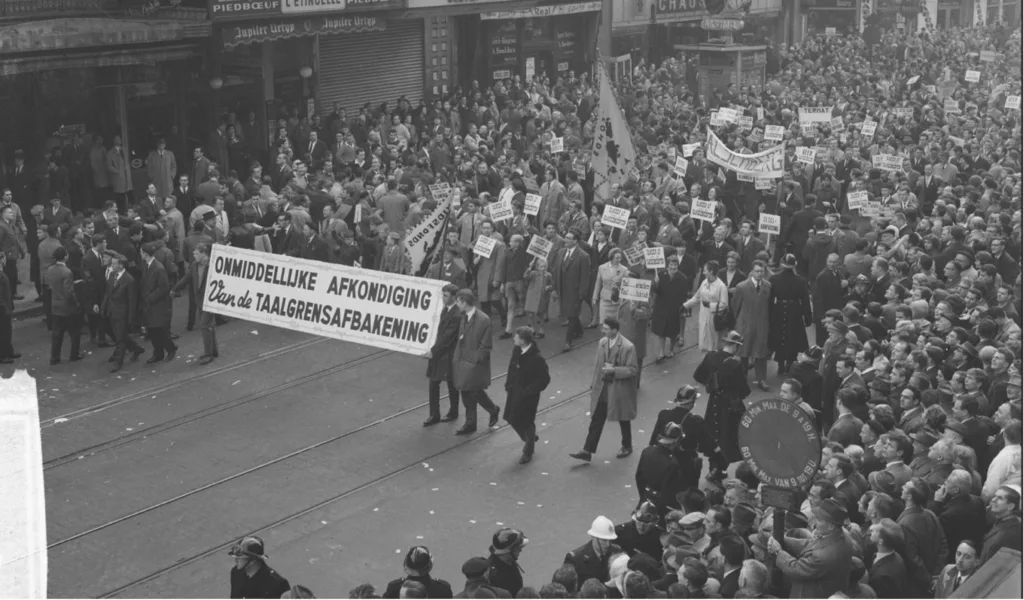 Voor Vlaanderen zijn er in de eeuwen voor het gebruik van het Nederlands in de officiële ruimten grote tegenslagen geweest; pas in de negentiende en twintigste eeuw kwamen er pas weer wettelijke wijzingen na massale demonstraties, zoals in 1962 met de zogenoemde Mars op Brussel (zie foto)