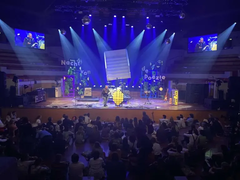 De 42ste Nacht van de Poëzie ligt weer achter ons. Twintig nachtdichters, een handvol spetterende entr’actes en tal van andere activiteiten werden in een uitverkochte grote zaal TivoliVredenburg met overgave omarmd en beleden door meer dan 1500 poëzieliefhebbers.