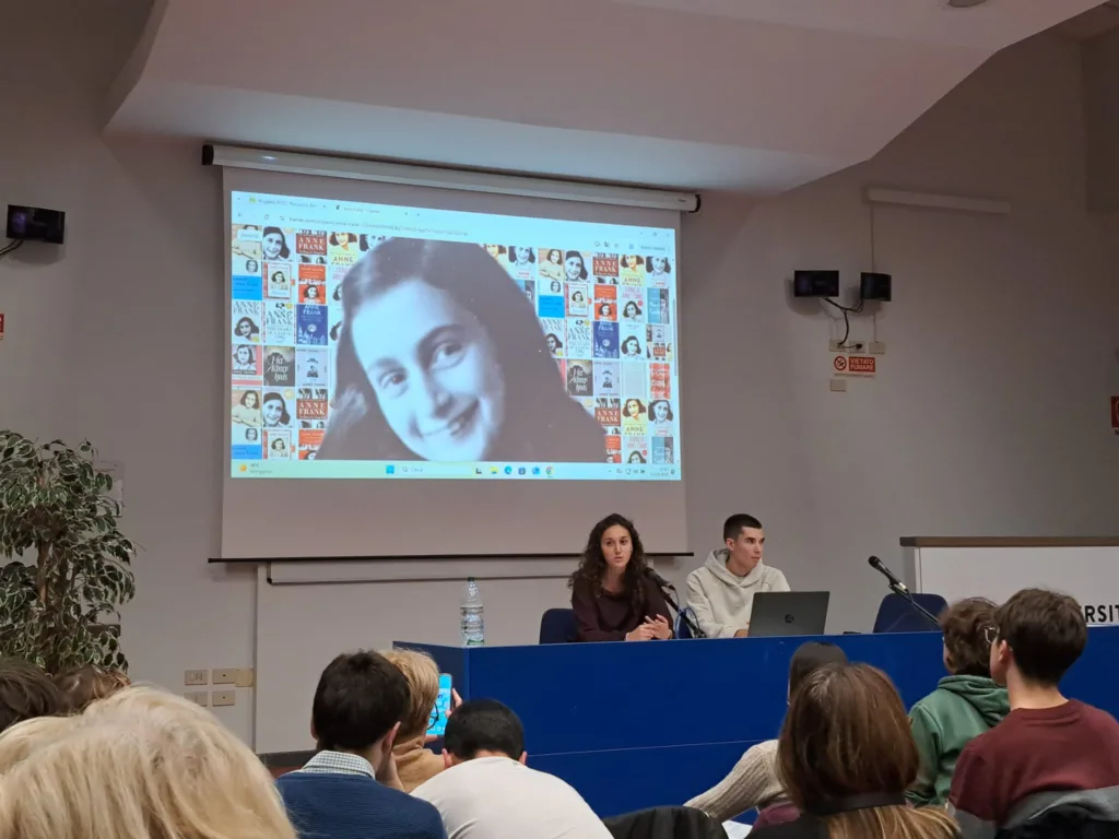 Op vrijdag 24 oktober vond in de aula magna van de SSLMIT (Opleiding Tolk/Vertaler) van de universiteit van Trieste een ontmoeting plaats tussen studenten en docenten van de vakgroep Nederlands en scholieren van twee klassen van het Petrarca-lyceum. Deze bijeenkomst vormde de afsluiting van een project gewijd aan de disseminatie van Anne Franks dagboek en de educatieve functie daarvan.
