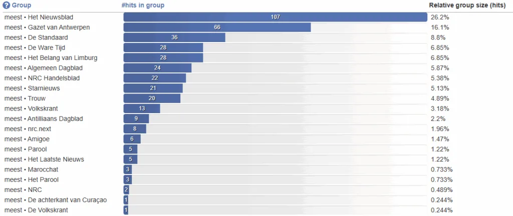 Splitsen we de resultaten uit naar krantentitels, dan blijkt de top vijf zelfs geheel uit Vlaamse kranten te bestaan: