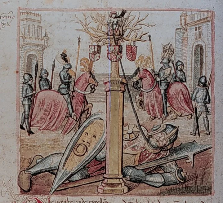 Deze week houd ik me ook bezig met het hoofdstuk waarin de Excellente kroniek van Vlaanderen en het huwelijk van Karel de Stoute en Margareta van York centraal staan. ‘The marriage of the century’ noemde Christine Weightman de bruiloft die in juli 1468 plaatsvond in Brugge. Het was een van de meest imposante Bourgondische feesten en er werd door heel Europa met aandacht naar gekeken. De gasten kamen uit de hele toen bekende wereld, er waren dagenlang intochten, banketten, een spectaculair riddertoernooi. Brugge was in die julidagen het centrum van de bourgondische ’theaterstaat’, waarin de vorst zijn positie benadrukte met pracht en praal en via die publieke vertoningen voelbaar maakte wat macht was.