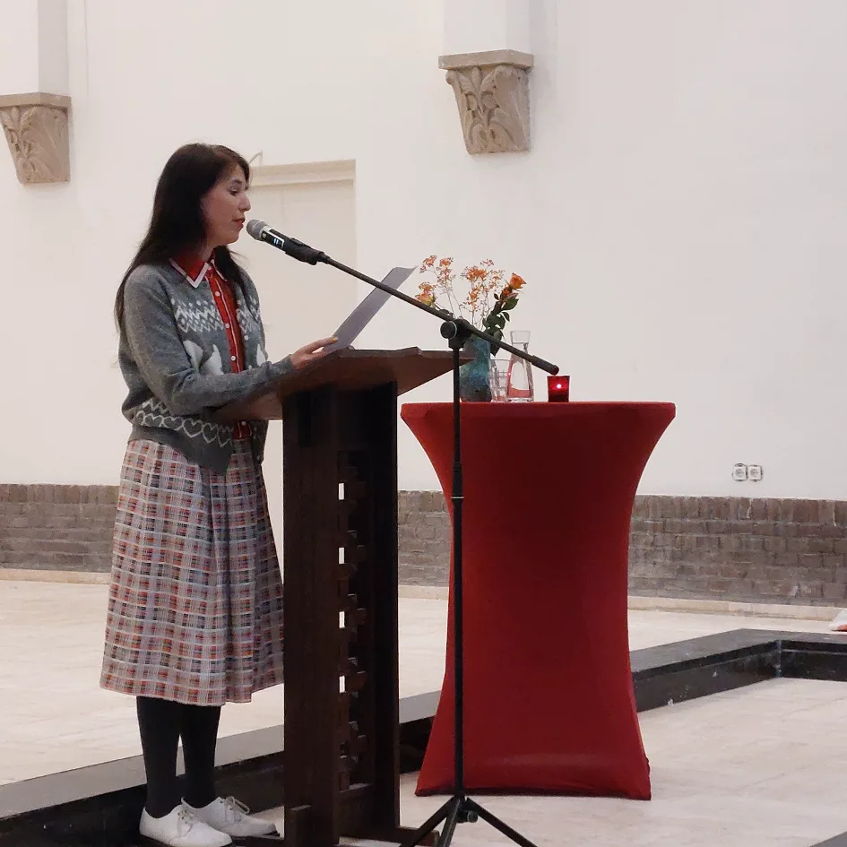 Op zondag 16 november sprak Eva Meijer de derde H.H. ter Balktlezing uit, voor ruim honderd aanwezigen. In de Maria Kapel in het Nijmeegse staddeel Hees. De titel van hun lezing luidde: ‘Van wie de woorden van wie de wereld’. Eva Meijer ging in dialoog met het werk van Harry ter Balkt, de naamgever van de reeks lezingen, en in dialoog met tal van anderen, de dieren, de dingen, de verhalen. Wie gekomen was om zich te wentelen in welbehagen, kwam die middag bedrogen uit: de analyse van wat de slachttijd in Nederland te zien gaf, liet geen ruimte voor zelfgenoegzaamheid. Het betoog was afwisselend vlammend en geestig, maar steeds onontkoombaar. In de lezing zette hen het ‘tegenverhaal’ voort dat in het bekroonde Muizenleven al zo welsprekend en teder had geklonken.