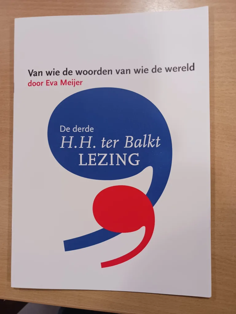 De tekst van de lezing van Eva Meijer was na afloop voor de aanwezigen in cahiervorm beschikbaar. Van dat cahier – en ook die van de tekst van de tweede H.H. ter Balktlezing (Nukkige vrijheid, op survivaltocht door het Antropoceen met H.H. ter Balkt), twee jaar geleden verzorgd door David Van Reybrouck – zijn voor de liefhebbers nog wel enkele exemplaren beschikbaar. Zo kan wie er niet was toch deelgenoot worden. Belangstellenden kunnen zich wenden tot het Poëziecentrum Nederland: poeziecentrumnederland@gmail.com. Geef in de mail wel aan wat je precies wenst te ontvangen. Voor de toezending rekenen we 10 euro per exemplaar, ter bestrijding van de kosten van porto en druk.