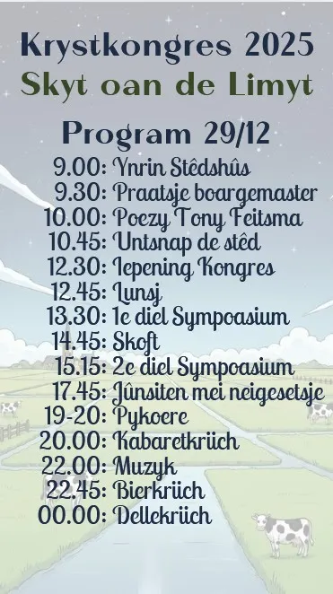 Wy hawwe net op alles in antwurd, mar wy witte wol dat wy tsjin allegear limiten oanrinne yn de wrâld en dêrmei ek yn Fryslân. Wêrom bestean dizze limiten, en hokker faktoaren spylje mei? Dit jier sil it tema fan it Krystkongres ‘Skyt oan de Limyt’ wêze, wêrby ferskate sprekkers ferskate limiten en harren aspekten beprate sille.