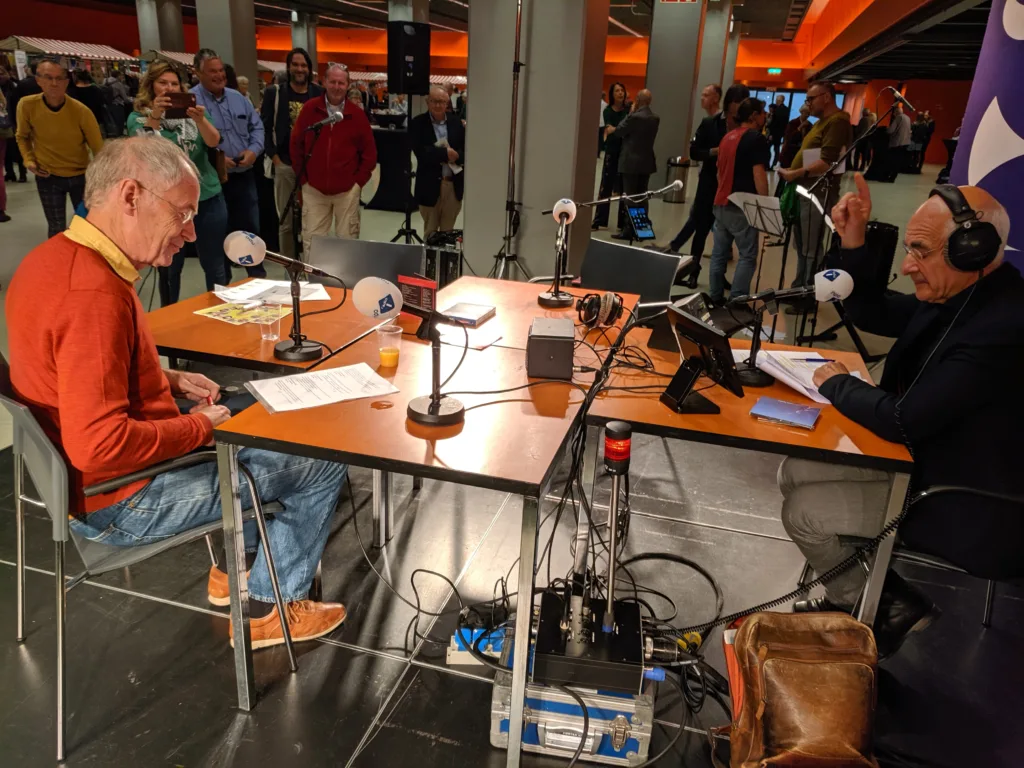 Na de Avondspits kwam onder meer ‘Tijd voor twee’ en vanaf januari 2014 als laatste kunststukje ‘De Taalstaat’ met ongebreidelde aandacht (Frits zal ‘ongebreideld’ een mooi woord vinden) voor de Nederlandse taal, teksten, liedjes, romans. Een kort voorbeeld uit een recent gesprek met Abdelkader Benali. Frits zit er als het ware bovenop om dát uit een schrijver te halen wat werkelijk van belang is, en ook interessant voor de luisteraar/lezer. Bij een keuze tussen drie schrijvers, kiest Benali voor Tonke Dragt. Hij herkent haar niet van de foto, en zegt: ‘Tonke Dragt, dat waren die boeken’. Frits: ‘Ja’. Benali: ‘En die verslond ik.’ Frits: ‘Waarom?’ Benali: ‘Omdat ik in een andere wereld was.’ Frits: ‘Dus aan Tonke Dragt, aan haar boeken, dank je je liefde voor… voor de verhalen?’ Benali: ‘Ja, ja, ja. De idee dat je met open ogen een droom kan leven, dat is literatuur.’ Daar kon Frits het alleen maar van harte mee eens zijn.
