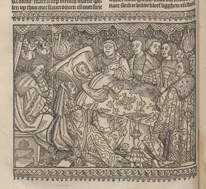 De thema’s komen aan bod rond de jaren waarin ze bij uitstek relevant en actueel zijn, en toen ik meer dan twintig jaar geleden een eerste opzet maakte kwam de scholing van iemand als De Roovere in deel 1 terecht, terwijl het laatste hoofdstuk als titel ‘Dans van de mol’ kreeg, naar het gedicht Van der Mollenfeeste (waarover ik, maar dit terzijde, een artikel schreef dat recent verscheen, en waarover ik een van de komende dagen nog kort zal schrijven). Maar een laatste hoofdstuk over de dood vond ik, toen ik de afgelopen weken nadacht over de opzet van dat derde deel, toch wat al te obligaat. En misschien was het ook niet zo’n aantrekkelijk slot, bedacht ik. Maar wat dan wel? Het zou kunnen gaan over de laatste teksten die hij schreef, en een paar daarvan zijn verrassend genoeg goed te dateren. Zo schreef hij een nieuwjaarsgedicht voor 1480 waarin hij stadsbestuurders prijst die in de jaren daarvoor daadkrachtig de infrastructuur hadden aangepakt en de financiën op orde hadden gebracht. En kort na de dood van De Roovere verscheen er bij de drukker Gerard Leeu in Antwerpen een omvangrijke reeks gedichten waarin de heilsgeschiedenis in kort bestek aan bod komt: de schepping, het leven van Jezus en tot slot de ‘vier uitersten’: dood, het laatste oordeel, de hel en het eeuwig leven. De gedichten zijn alle voorzien van houtsneden en ze waren bedoeld om ter overdenking aan de wand op te hangen. Deze bijzondere uitgave heb ik eens als ‘opus ultimus’, het laatste werk, aangeduid. En dat bracht me op de gedachte in het laatste hoofdstuk het laatste werk van de schrijver centraal te stellen. Onder dat laatste werk zijn wat teksten die heel nauw samenhangen met de diepe crisis waarin Brugge verzeild raakt in 1481-1482.