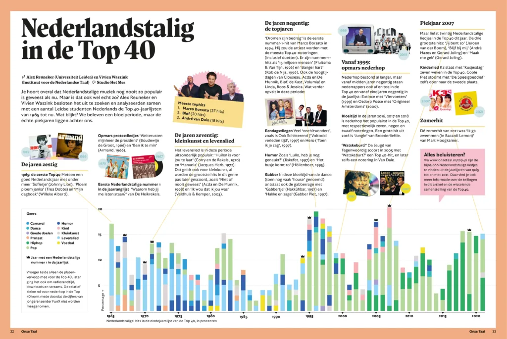 Hoewel er al jaren wordt gesproken over de opkomst van Nederlandstalige popmuziek (zie o.a. We genieten steeds meer van het levenslied: ‘De schaamte is eraf’, NOS; De opkomst van Nederlandstalige pop bij de Song van het Jaar is geen toeval, 3voor12), was 2007 het laatste piekjaar van Nederlandstalige popmuziek in de Top 40 (Reuneker & Waszink, 2022).