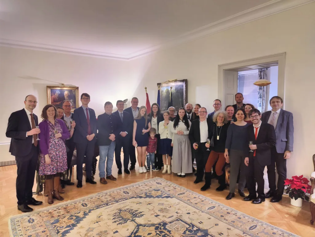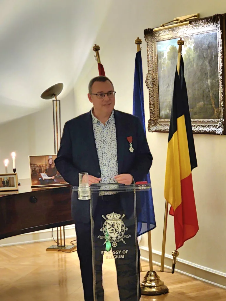 In aanwezigheid van Gunther Vanheste, algemeen secretaris van de Taalunie, de decaan van de faculteit Geesteswetenschappen, enkele studenten en de leiding van het Instutuut voor Germanistiek van de Universiteit Debrecen, de viceburgemeester van Debrecen, de voorzitters van Belgabiz en Vlamingen in de Wereld, de Vlaamse Vertegenwoordiging, een vertegenwoordiger van de Nederlandse ambassade en collega Benjamin uit Bratislava heeft de Belgische ambassadeur Jeroen Vergeylen in zijn residentie Gert Loosen het ereteken van Ridder in de Kroonorde overhandigd, als dank voor zijn buitengewone verdiensten in de Belgisch-Hongaarse betrekkingen.
