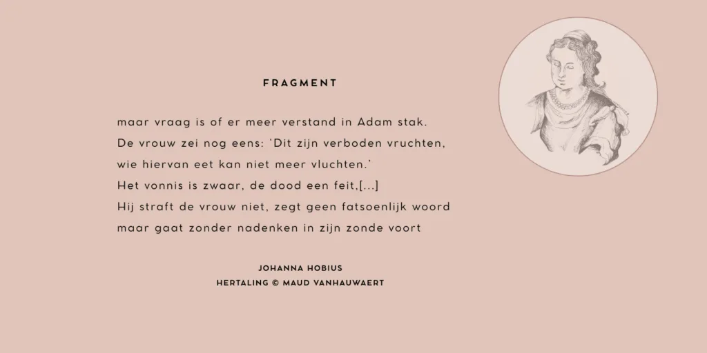 Eva begrijpt het verbod en benoemt de consequenties, maar Adam… Nouja zeg, die handelt zonder nadenken! Foei. Hobius verwerpt zo de Schrift niet, maar berispt wel fijntjes de vrouwenverachters. Deze retorische herlezing past natuurlijk perfect binnen de querelle des femmes: vrouwen zijn niet dommer, maar handelen minstens zo rationeel als mannen.