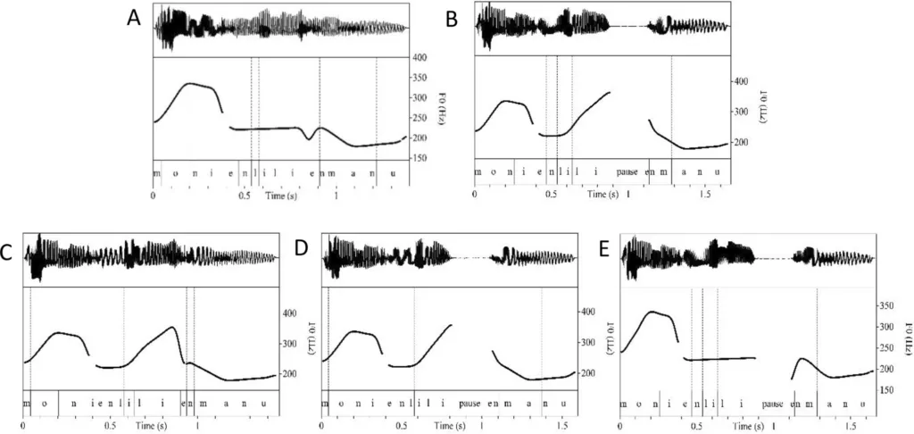 In experimenten waarin Nederlanders werd gevraagd dit soort woordgroepen te produceren, gebruikten ze alle drie die manieren: Lilli werd een beetje hoger, en een beetje trager én het werd gevolgd door een pauze. Maar vervolgens legden de onderzoekers luisteraars ook met de computer gemanipuleerde versies van de opnamen voor – versies waarin de toonhoogteverandering, of de vertraging, of de pauze, of een combinatie ervan, waren weggegumd.