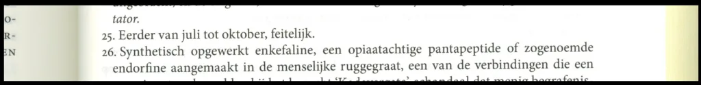 Het boek is binnen en wat er dan meestal gebeurt, zo gauw ik het opensla vind ik een zetfout-drukfout, wat een mooie naam is voor een typfout die aan mij en het arendsoog van de talloze met hun neus kijkende redacteuren, correctoren, persklaarmakers en dergelijke is ontsnapt. Meteen, bam: typfout. Je kan er de klok op gelijk zetten. Gif op innemen. Donder op zeggen.