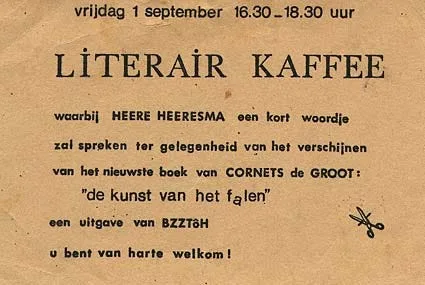 Natuurlijk verschilden hun middelen en methoden. Waar Cornets de Groot zijn strijd uitsluitend op schrift voerde, daar ging Heeresma de boer op, spande uitgevers voor zijn kar en voegde in het algemeen liever de daad bij het woord dan andersom… In maart 1972 kwam hij in persoon leenrechtvergoedingen opeisen bij bibliotheken die zijn boeken uitleenden. Cornets de Groot, die vooral voor bibliotheken schreef – ‘Cornets de Groot is essayist of, zoals hij zelf spottend zegt, “bibliotheekvuller”, “ik schrijf voor bibliotheken”’4 – liep mee met dit zogenaamde Schrijversprotest, al zal dat op initiatief van zijn zwager zijn geweest: zelf had hij weinig financieel belang bij de acties, terwijl Heeresma er met zijn sellers daadwerkelijk wat bij te winnen had. Maar als Heere zei: ‘Je gaat mee’, baatte geen verweer.