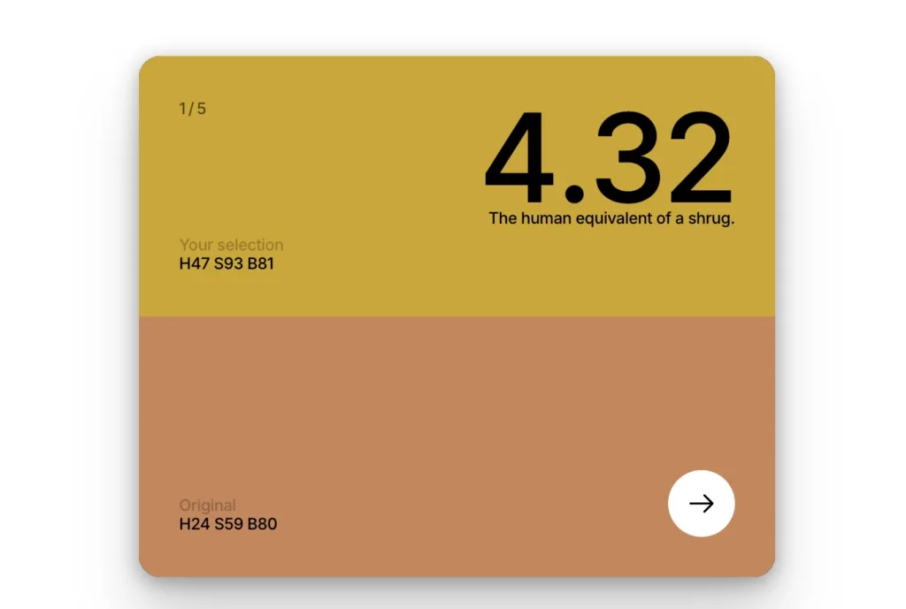 Dankzij het – gratis – spelletje Color kun je het nu zelf ervaren. De regels zijn simpel: je krijgt gedurende een aantal seconden een kleur te zien, en daarna moet je met wat schuifjes dezelfde kleur zien samen te stellen. Het is op zich een amusant spelletje, je kunt er je gevoel voor kleur mee toetsen.