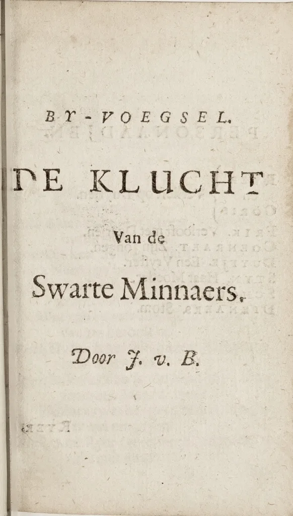 Byvoegsel [bij De Gasconse klucht holster, 1659]. De klucht van de swarte minnaers. Door J. v. B. [digitaal raadpleegbaar https://www.let.leidenuniv.nl/Dutch/Ceneton/BreenMinnaers1659.html]