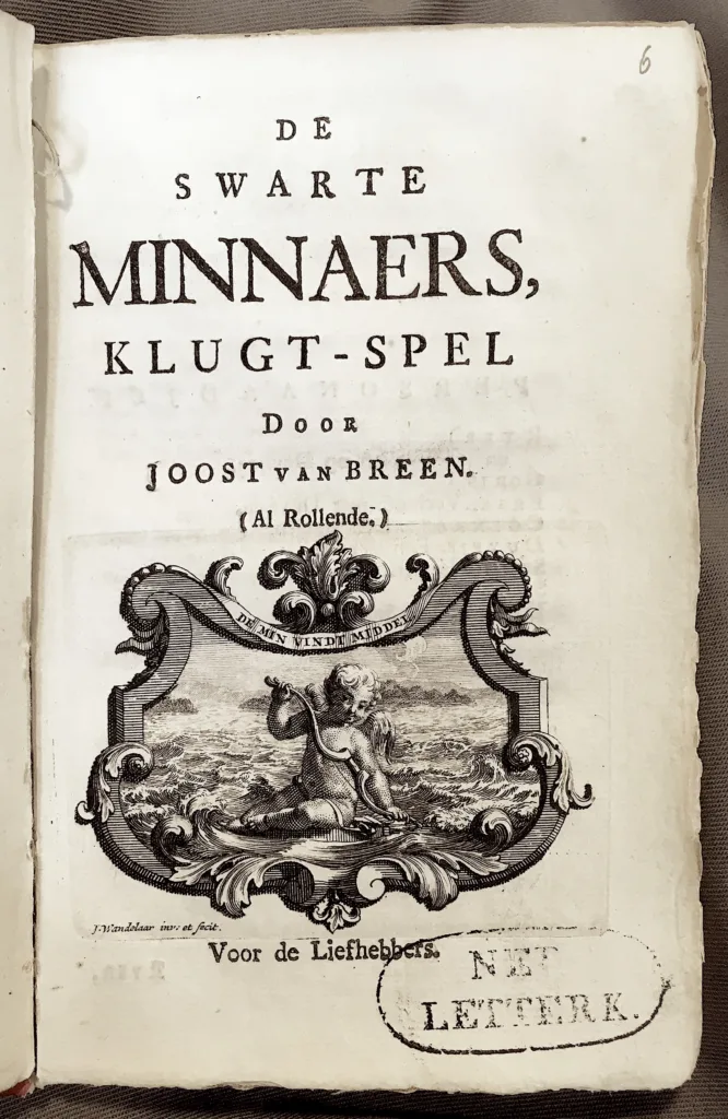 De swarte minnaers, klugt-spel door Joost van Breen (Al Rollende) [ca. 1748] [digitaal raadpleegbaar https://www.let.leidenuniv.nl/Dutch/Ceneton/BreenMinnaers1748ca.html]