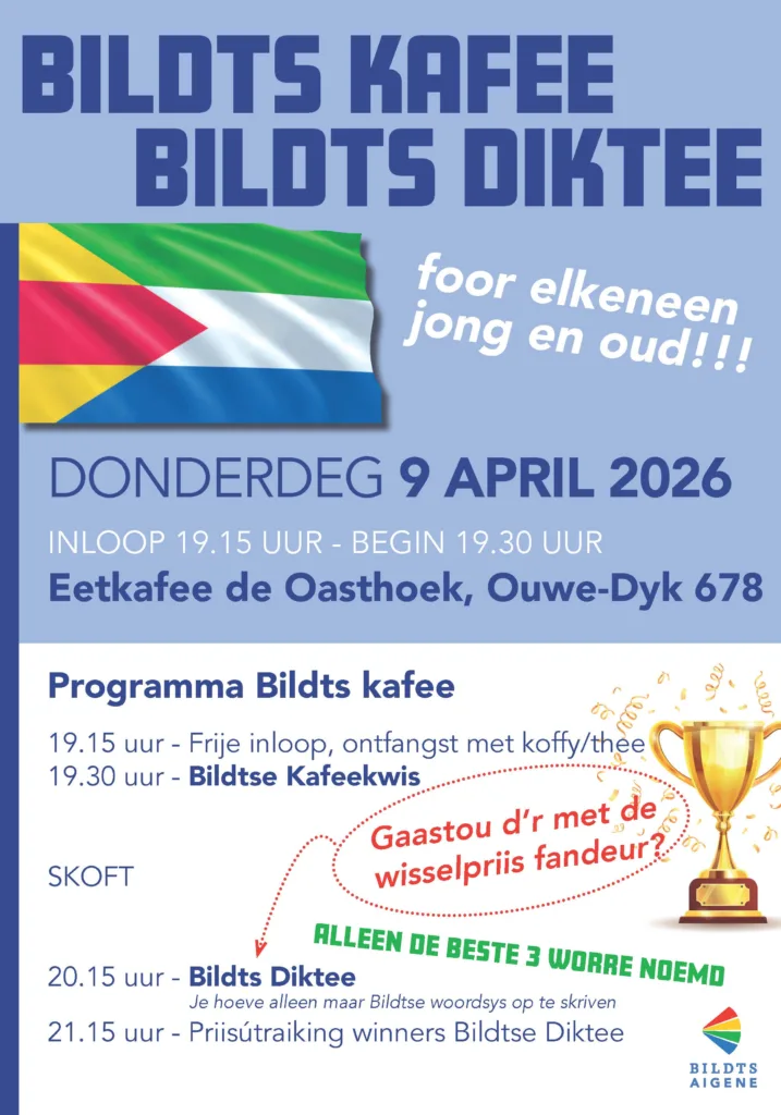 Om meer deelnimmers te trekken, pakke wij ’t diktee al sont twee jaar wat âns an. Fansels blyft ’t diktee, dut jaar deur Paul Feenstra skreven, ’n belangrykste, maar wij hewwe nou ’n programma innander set. D’r komt befoorbeeld ’n korte Bildtse taalkwis as opwêrmer. Je hoeve niet ’t hele diktee te skriven, maar ’n stik of wat woordsys.