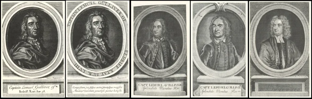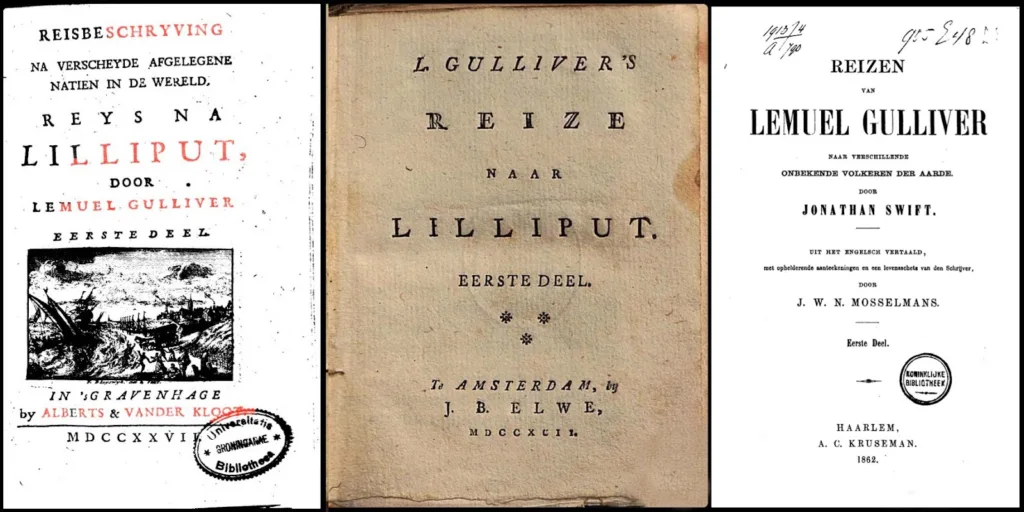 De tweede vertaling dateert uit 1792 en is ook anoniem. De derde vertaling – ik tel alleen de complete vertalingen, niet de bewerkingen, meestal voor kinderen – is een uitgave van A.C. Kruseman uit 1862, van de hand van J.W.N. Mosselmans, en heet Reizen van Lemuel Gulliver naar verschillende onbekende volkeren der aarde door Jonathan Swift, waarmee hij afstapt van de toeschrijving aan kapitein Gulliver zelf. Dat deed Swift overigens zelf ook al snel, omdat het vrijwel onmiddellijk duidelijk was dat er niemand anders achter kon zitten dan de Dublinse dwarsdenker. Bij het samenstellen van zijn verzamelde werken in 1735 neemt hij dan ook het auteurschap op zich; een portret van Lemuel Gulliver krijgt het onderschrift ‘splendide mendax’, ofwel subliem leugenachtig (een frase uit Horatius’ Oden, 3.11).