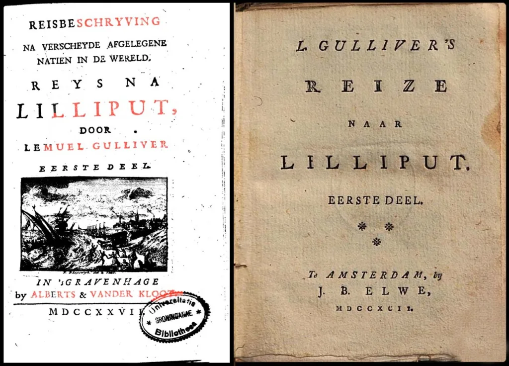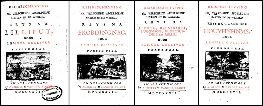 En de titel is ook in de eerste Nederlandse vertaling, van een jaar later, heel duidelijk: het is een Reisbeschryving. Een Reisbeschryving na verscheyde afgelegene natien in de wereld. En de tweede Nederlandse vertaling, uit 1792, zegt het ook: L. Gulliver’s Reize staat erop. Kijk maar: