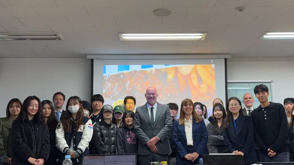 Op 19 oktober werd een seminar georganiseerd met de Belgische ambassadeur in Korea als eregast. Tijdens deze bijeenkomst werd uitvoerig gesproken over de toekomstige ontwikkeling van de neerlandistiek en over het versterken van academische en educatieve samenwerkingen met Belgische universiteiten. Aanwezig waren onder meer de Belgische ambassadeur Bruno Jans, plaatsvervangend ambassadeur Michiel Ceulemans, afdelingshoofd Jihie Moon, evenals de docenten Willem van der Leun, Ruth Plessers en Soo-Kyung Cho. Ook Laurissa Kroos, stagiaire van de Universiteit van Amsterdam, gespecialiseerd in NT2 en meertaligheid, nam deel aan het programma.