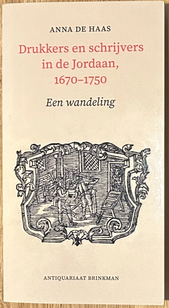 Anna de Haas, Drukkers en schrijvers in de Jordaan, 1670-1750. Een wandeling. 95 p., met talrijke illustraties in kleur, literatuuropgaven en register. Amsterdam, 2026. Meer informatie en bestellen via Antiquariaat Brinkman