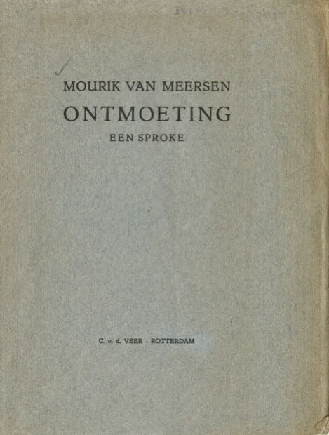 Tussen de twee delen van zijn Erts-recensie, in december 1927, verscheen het fictionele Ontmoeting. Een sproke, uitgegeven door C. v.d. Veer in — alweer — Rotterdam en gedagtekend met ‘R’dam 1927’. Het werd in een paar regels neergesabeld in Den Gulden Winckel: ‘Door niets wordt dit debuut(?) gewettigd. Zulke “sproken” worden bij duizenden geschreven in elk derderangsblaadje. De heer van Meersen heeft echter één zeer verstandige daad gedaan. Zijn werk is “gedrukt te Rotterdam in beperkte oplaag”. Moge het hierbij blijven!’ Van Duinkerken liet zich ook stevig horen: ‘Tegen een onbeduidendheid als deze is geen kritiese metode opgewassen. […] Van Meersens lekepreekje zou als ingezonden stuk in het verachtelikst provinsieblaadje een paskwil geweest zijn, in boekvorm is het een brutaliteit, zo geen waanzin.’ En Den Doolaard maakte de auteur , verwijzend naar de inhoud, flink belachelijk in aNti-schUnd: ‘Mourik, Mourik, wat ben je begonnen. Je moeder heeft je nog wel zoo gezegd, ’s avonds niet naar vreemde heeren te luisteren, vooral niet wanneer ze rijzig en slank zijn, en een soepel lichaam hebben, dat uit een spiritueel soort elastiek bestaat, zoodat ze naar willekeur uitrekken en inkrimpen.’(J. Theunisz, ‘Kroniek van het proza’, Den Gulden Winckel 27 (1928) 1 (Jan.), 21; Gerversman, Nieuwe kunst…, 48; A. den Doolaard, ‘Mourik van Meersen: “Ontmoeting”’, aNti-schUnd (De Vrije Bladen/De Gemeenschap, Utrecht 1928), 45v)