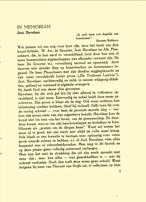 Een andere vraag is of in De Jongs kennissen- of vriendenkring ook de bij Van Meersens ‘werken’ betrokken Rotterdammers figureerden. Van hen komt helaas alleen Just Havelaar voor in Mels de Jongs biografie. Havelaar was een bekende van De Jongs jeugdvriend Dirk Coster, bovendien vormden beiden de redactie van De Stem waaruit Van Meersen, zoals vermeld, citeerde in zijn artikel over Tielens. De Jong kán dus Havelaars artikel gekend hebben, wat echter een bescheiden vingerwijzing is.