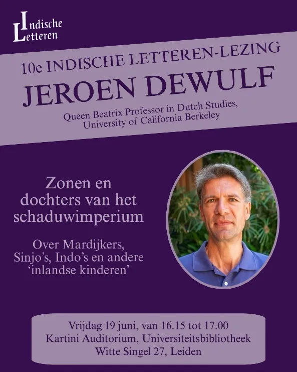 Op vrijdag 19 juni 2026 zal de Tiende Indische Letteren-lezing plaatsvinden, met de voordracht van prof. dr. Jeroen Dewulf, Queen Beatrix Professor in Dutch Studies aan de University of California, Berkeley, onder de titel: Zonen en dochters van het schaduwimperium, over Mardijkers, Sinjo’s, Indo’s en andere ‘inlandse kinderen’.