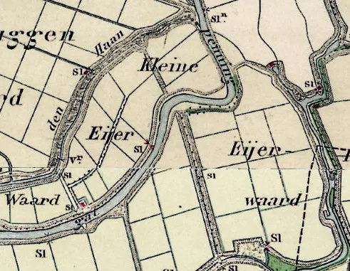 Bovenstaande kaart uit 1642 is voor zover bekend de oudste kaart met een Eijerwaert. Een kaart uit 1684 toont het Eijersant. De vorm oogt anders…