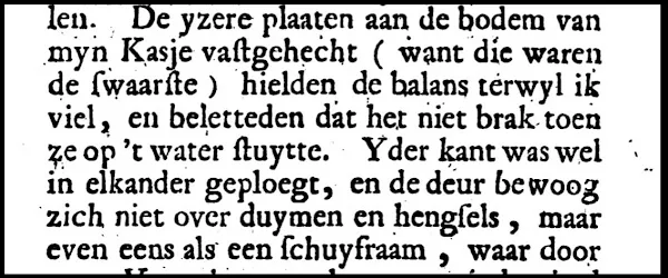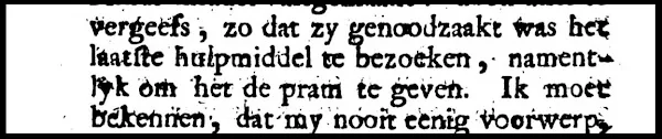 Nog steeds aan tafel ontsnapt Gulliver aan een wisse dood als een verwende eenjarige zuigeling hem oppakt en laat vallen, gelukkig in het schort van de Nurse, de min, de baker, de zoogster, die daarop de brullende handenbinder moet sussen by giving it suck, door hem te zogen, te laten lebberen, door hem de borst te geven, kies maar uit. Maar kijk, er zijn meer mogelijkheden, en fraaie ook nog. 1727 heeft om het de pram te geven. Die uitdrukking kende ik niet en neem ik graag voor 2026 over. (1792, 1862, 1940, 1974, 1979 en 2004 hebben alle zes een of de borst geven.) Even later gaat het over haare monstreuse borst (1727) en vervolgt die vertaling: De tepel was ontrent half zo groot als myn hoofd, en haar coleur gelyk ook die van de mam zo bont van vlakken, puysten en sproeten, dat ’er niets walgelykers voorkomen kan – en dan neem ik mam ook graag over, maar dan als mem, dat net als het Engelse Dug betrekking heeft op de zogende borst van een min of vrouwtjesdier (uier, door 1979 gebruikt, ‘teat’). In 2004 is dug abusievelijk vertaald als tepelhof (de lichtbruine, bij zogende vrouwen donker wordende kring om de tepel, aldus Van Dale), zoals daar wel meer verkeerdelijk vertaald is, Adventures bijvoorbeeld standaard als avonturen in plaats van als lotgevallen of wederwaardigheden, pleased als prettig vond in plaats van behaagde, reasonable als redelijk in plaats van met rede begaafd, security als zekerheid in plaats van borg, cottagers als plattelanders in plaats van landarbeiders, creature als creatuur in plaats van protégé etc etc, de lijst is eindeloos.