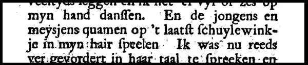 Aan het begin van hoofdstuk 3 (we zitten nog steeds in Lilliput) vertelt Gulliver dat hij bezoek krijgt van jongens en meisjes to come and play Hide and Seek in my Hair. Verstoppertje spelen, ligt voor de hand, zoals 1940, 1979 en 2004 dat hebben. Maar dat heette vroeger ook anders: 1727 heeft schuylewinkje speelen, 1792 maakt er buitelen van en 1862 heeft schuilhoekje spelen. Dan vind ik schuilevinkje hier wel zo leuk, en zie: schuilevinkje heeft ook 1974!